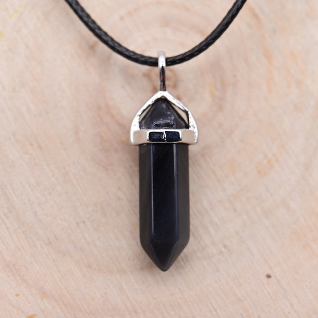 Pendentif Pointe Hexa Obsidienne Noire "Armure"