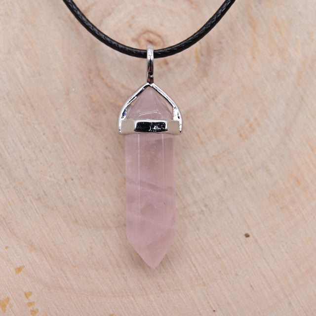 Pendentif Pointe Hexa Quartz Rose "Amour"